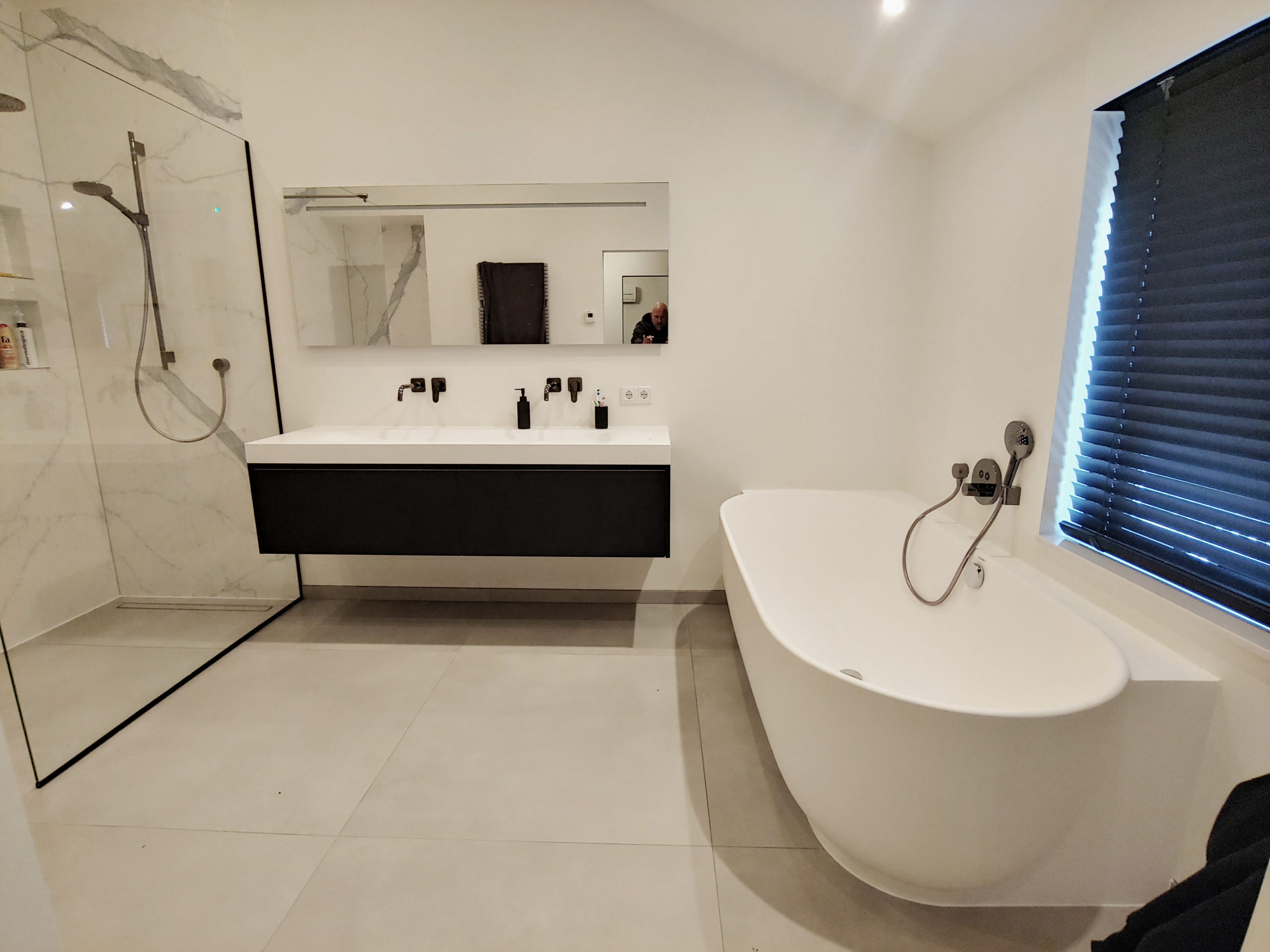 Deze vrijstaande villa onderging een volledige renovatie, waarbij de bovenverdieping een nieuw uiterlijk kreeg en de benedenverdieping volledig werd herbouwd en uitgebreid met een aanbouw.