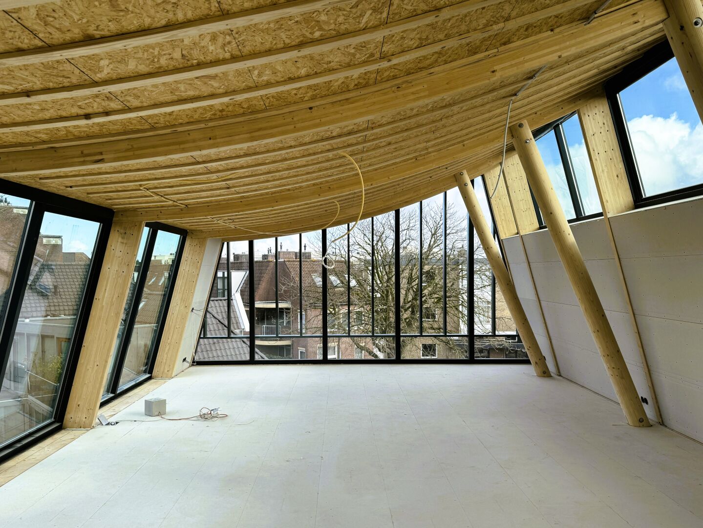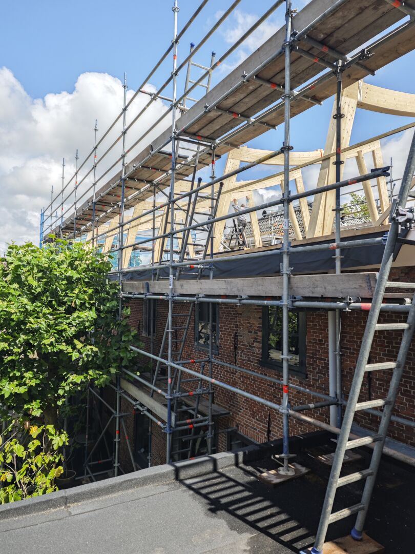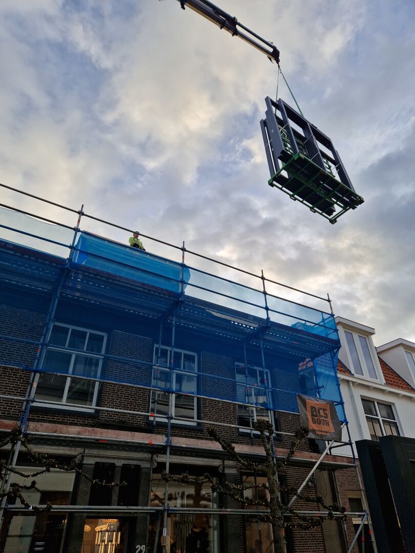 Maaldrift Houtbewerking verzorgde de opbouw. Na het voorbereiden van het bestaande gedeelte, werden prefab elementen ter plekke samengevoegd. Door de winkel op de begane grond te concentreren, ontstond ruimte voor appartementen op de verdiepingen erboven.