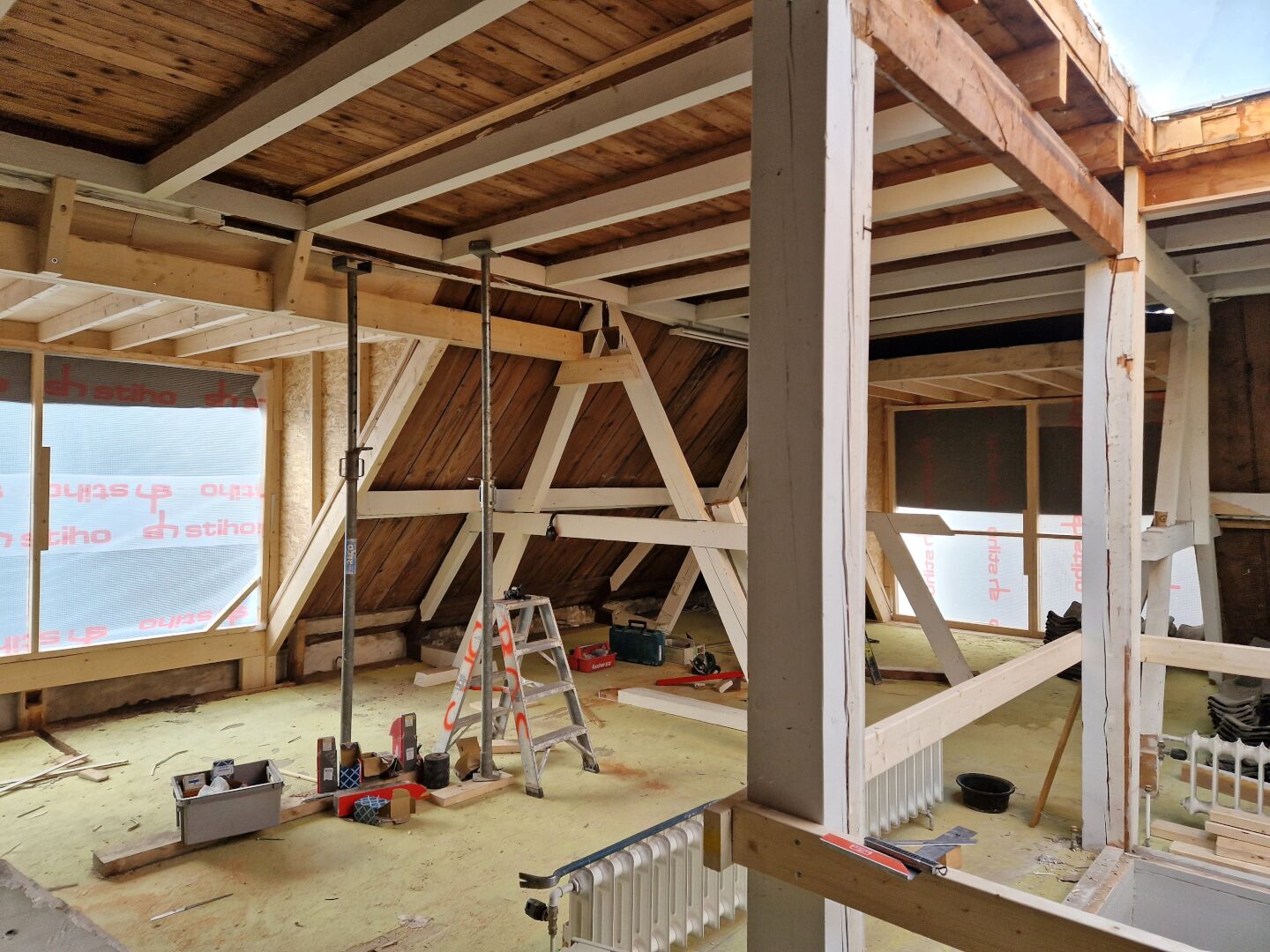 Het trappenhuis van de winkel is verwijderd en vloeren en plafonds zijn dichtgemaakt. Warmtepompen met vloerverwarming en isolatie zorgen voor comfort en duurzaamheid. Extra ramen brengen meer licht binnen. De omzetting van winkel naar woonruimte gebeurde in overleg met brandweer en gemeente, met extra aandacht voor brandveiligheid.